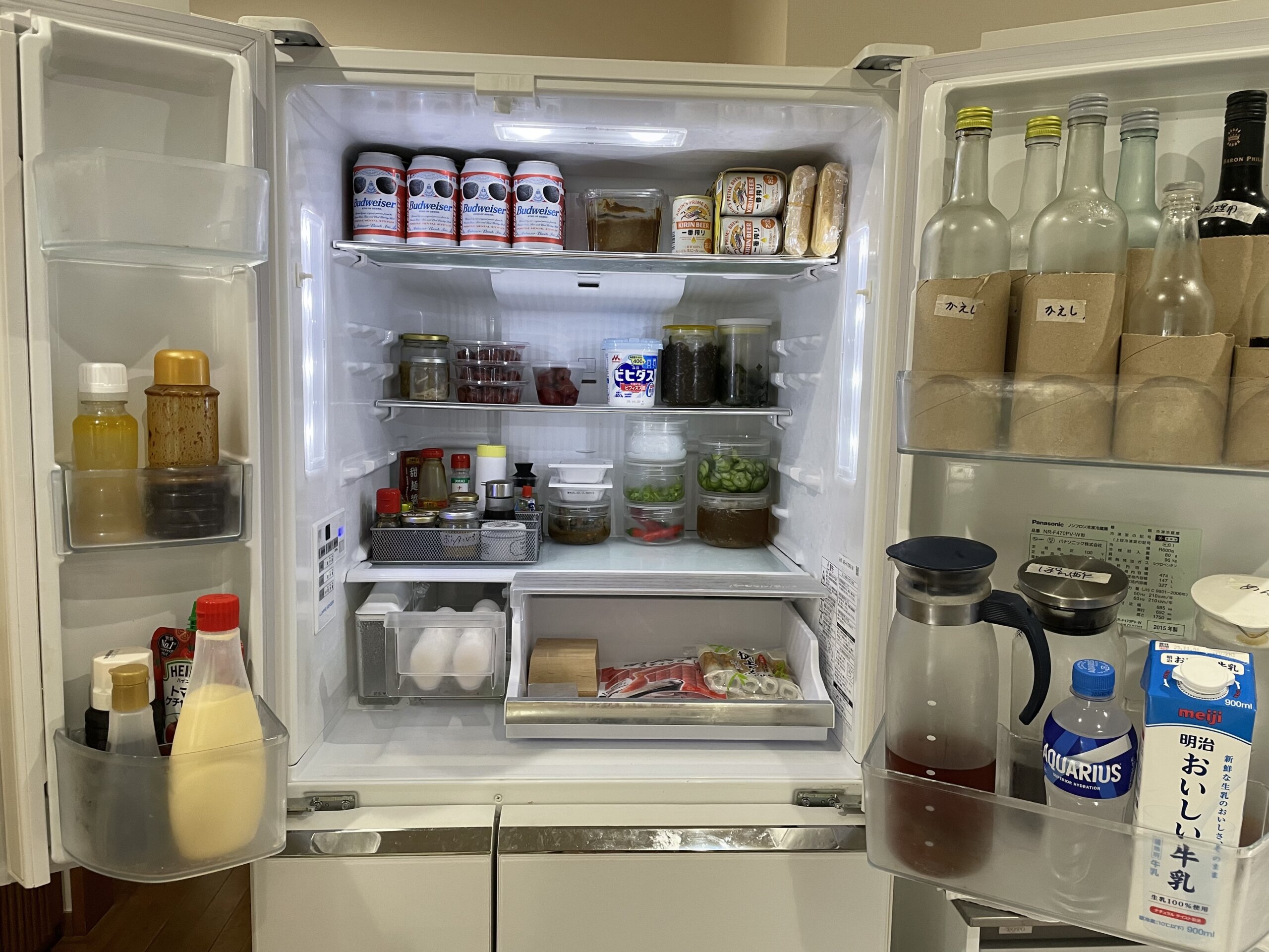 冷蔵庫も整理。モノが多いと開けた時に目に入ってくる情報が多すぎる。せめてその情報がゴチャゴチャしないようにできるだけ整理整頓。
